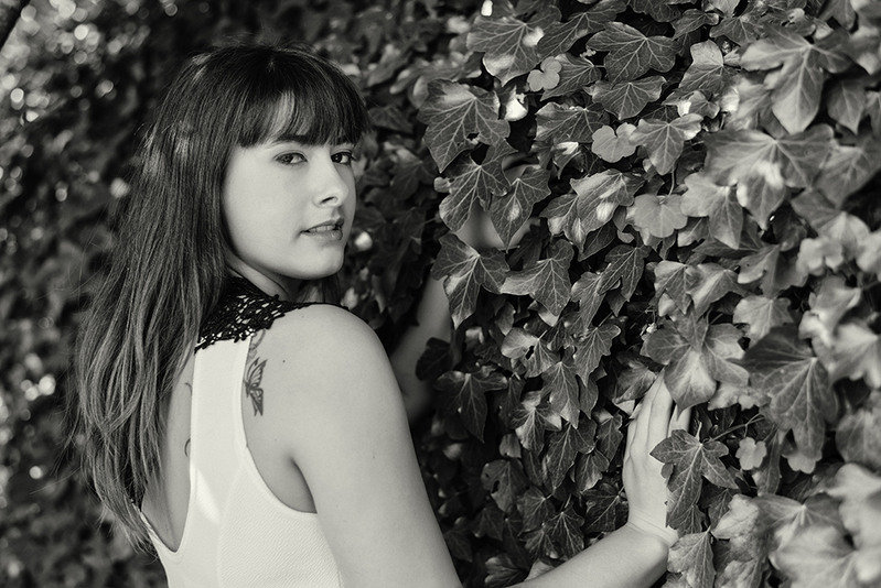 Trop dans la lumière pour moi ,manque de modelé sur le visage ,perso j'évite le blanc en extérieur à moin d'etre sure de maitriser la lumière,coté pose ,les bras relevés n'apportent rien à mon sens au cliché ,par contre avec cette pose dommage de ne pas profiter entièrement du tatouage