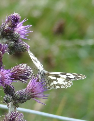 Ton compact impose des limites techniques avec lesquelles on ne va pas juger trop sévèrement la qualité de ton image mais, par contre, la compo et le cadrage de dépendent pas beaucoup de l'appareil utilisé et là, je trouve que ça pêche : l'angle de prise de vue sur le papillon n'est pas top, les fleurs sont trop coupées et cette bande blanche n'a rien à faire dans le cadre...