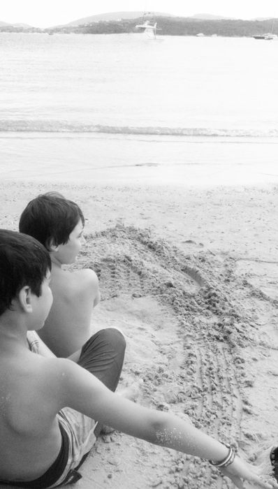 Manque de contraste et de structure sur le sable, ton dégradé de blanc et trop important.