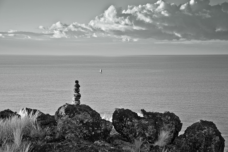 j'aime ce paysage maritime en N&B le cairn est bien placé, la bande de nuages aussi. L'on peut dire que la partie droite est un peu vide et que si le voilier y avait été.... je ne dis rien