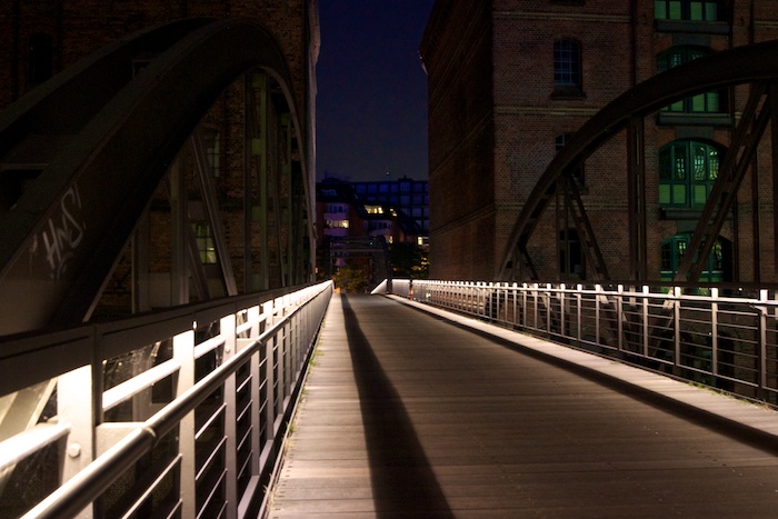Même si elle n'est pas symétrique comme si la photo avait été cadrée depuis le milieu de la passerelle, je trouve la perspective assez dynamique et efficace...