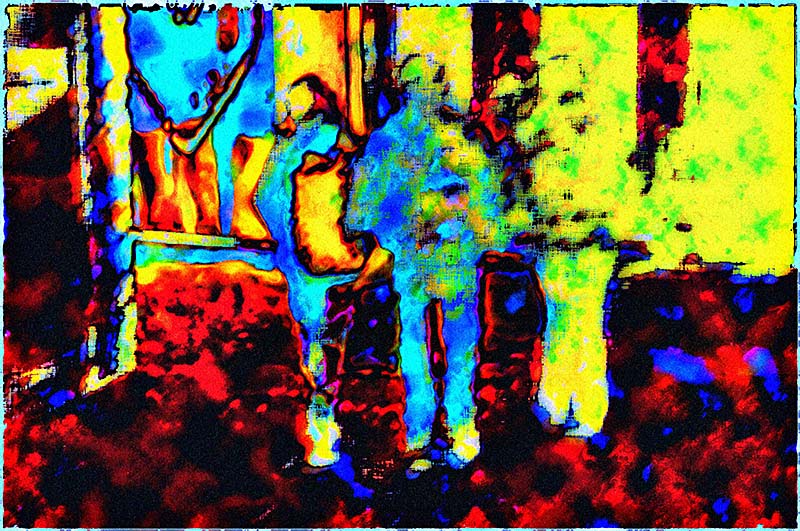 J'aime assez le personnage de droite qui se confond avec l'arrière-plan et l'ouverture de la perspective vers la gauche...