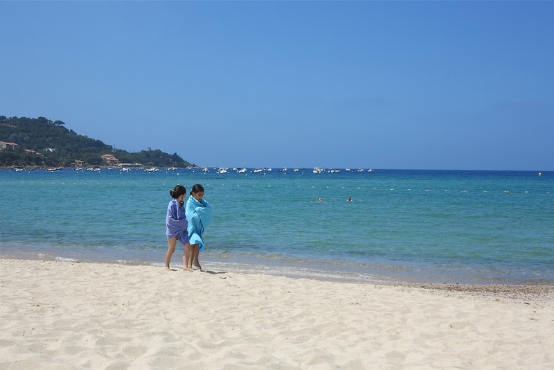 Un peu large mais finalement bien composé et surtout, belle harmonie des tons entre la mer, le ciel et les draps de plage des jeunes filles...