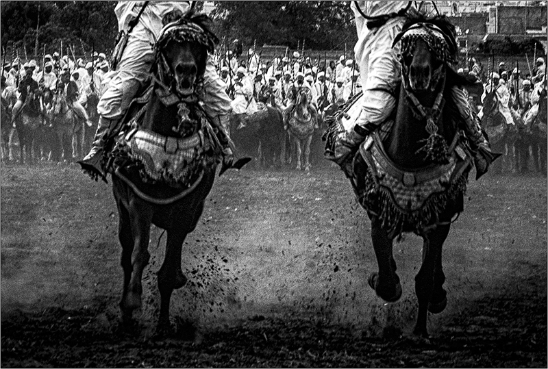 Je trouve qu'entre la densité du n&b, la compo symétrique et le parti pris des cavaliers plus que décapités, cela fait beaucoup pour une seule image, même si le résultat de celle-ci est très cinématographique...