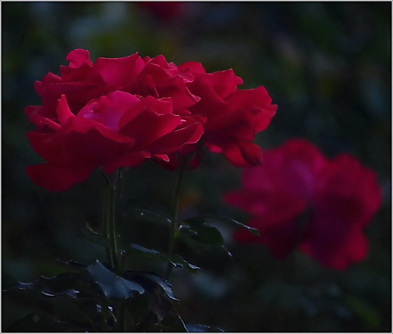 J'aime bien l'ambiance nocturne qui baigne ce bouquet de roses mais je regrette que les trois premières se superposent autant en rendant leur lecture un peu difficile et en rendant la compo moins intéressante...