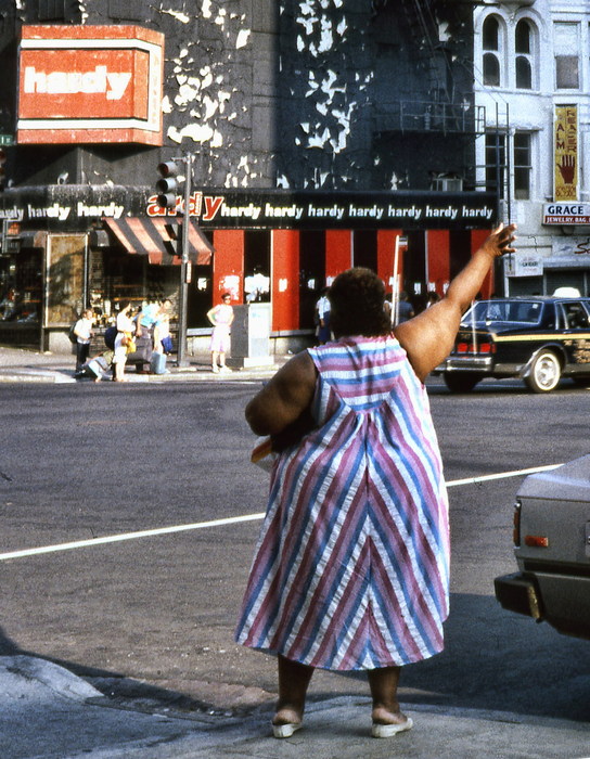 je n'aime pas du tout. On sent que seule la corpulence de la dame à attiré l'oeil du photographe car il n'y a ici aucune compo, aucune gestion des divers paramètres, juste du "montrage"