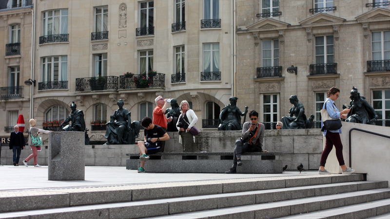 Pour être franc, je ne trouve rien d'intéressant dans cette photo, l'immeuble est penché... Il aurait été bien, par exemple, de trouver un rapport entre les statues et les personnages, trouver des jeux d'ombre...