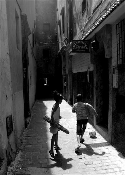 Une sacrée ambiance dans ce cliché. La "brume" au fond me fait imaginer quelqu'un cuisinant à l'étage, je sens les bonnes odeurs. Le gamin qui a la bonne position, la fille avec son paquet, la lumière forte qui apporte des ombres qui sont bien placées et gérées (peut-être juste dommage que les têtes des gamins ne soient pas sur fond blanc). Je voyage, j'imagine même si je me plante en imaginant, pas grave.