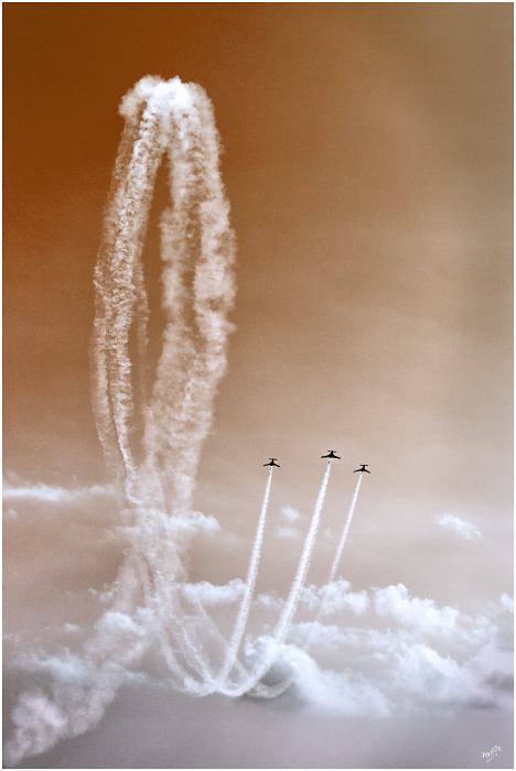 Tu étais superbement bien placé pour saisir cette figure de voltige, la boucle est idéalement placée dans le cadre pour laisser aux avions la place pour s'échapper