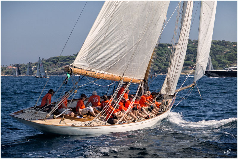 Les 16 équipiers, sur cette vieille coque de 19,25 m, ne sont-ils pas beaux dans leur uniforme ? Merci et pardon si j'abuse de mon sujet !