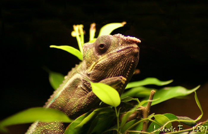 Un peu centré et les feuilles surex derrière la tête attirent trop le regard. Il y a un effet de moutonnement sur l'arrière plan pas entièrement noir...