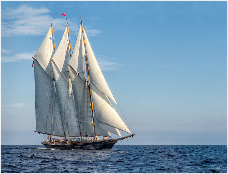Tant je l'aime, voici une nouvelle version, aérée en haut et à droite de cette splendide goélette à 3 mâts que j'avais saisie l'an dernier. Je ne résiste pas à vous la montrer à nouveau.