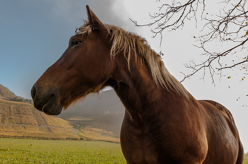 Joli portrait, le cheval a beaucoup de présence, l'angle de PdV y est sans doute pour beaucoup.