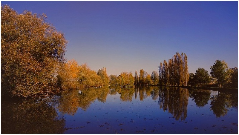 J'écrivais que ta photo est bein cadrée et les couleurs bien traitées. Je ne peux pas résister à cette modif qui peut s'intituler "vol d'oiseaux au dessus du lac :