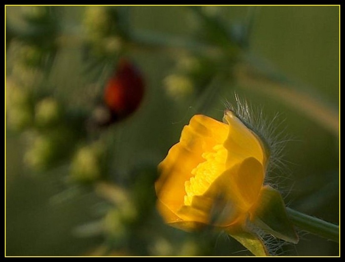 Très joli ! Le coeur de la fleur aurait pu être un peu plus net, mais j'aime beaucoup la progression du net au flou, les couleurs, le cadre, tout !