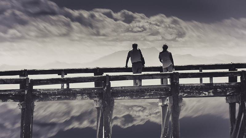 Ta photo donne le vertige ! Avec ces éléments, on a de quoi s'inventer des histoires. J'aime bien les tons, un bon contraste, une lumière un peu claire ; peut-être monter ou descendre la rambarde pour les 2/3.