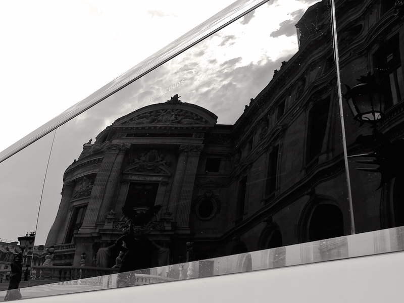 Bien vu l'opéra Garnier dans le reflet de ce car. Une photo bien gérée avec ces diagonnales et ce n&b du plus bel effet.