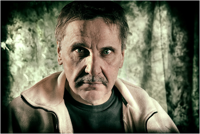 Le regard un peu fou d'un homme des bois Peut-être sans vignettage ou moins.