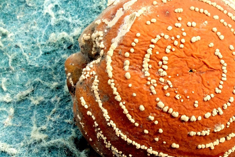 Oui, j'ai essayé mais ça ne me plaît pas. A gauche, le côté grat' d'une vieille éponge, pour jouer sur le contraste des couleurs et de la matière.