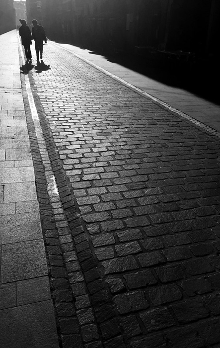 on reste plantés à regarder les pavés trop neufs pour donner du caractère. On découvre tardivement les marcheurs à l'ombre intéressante