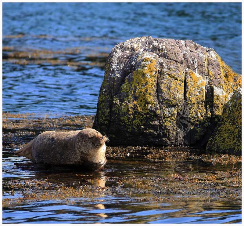 Bizarre, mais mon regard est plus attiré vers le rocher que vers le phoque. Ce rocher est trop présent à mon goût. Mais la bouille du phoque est sympa !