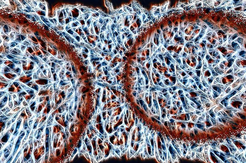 On dirait des neurones...qui seraient attaqués par je ne sais quelle matière circulaire rouge...!
