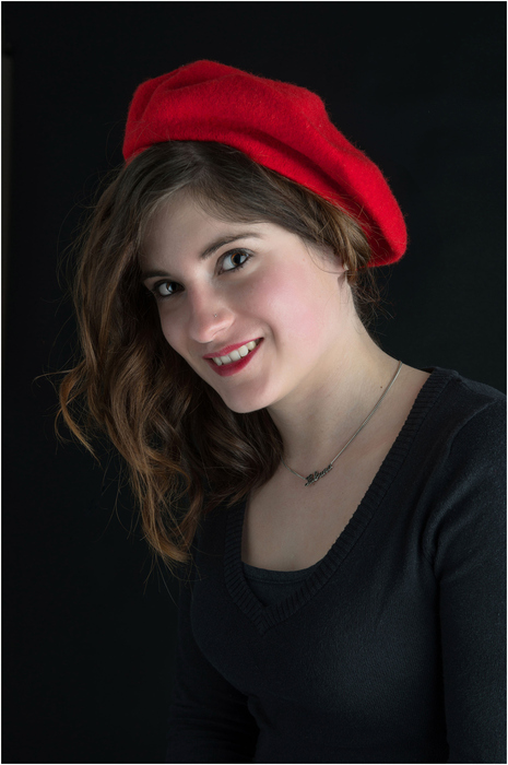 Très jolie ... un beau sourire et un petit air malin que j'aime beaucoup et une belle lumière .. ce béret rouge superbe