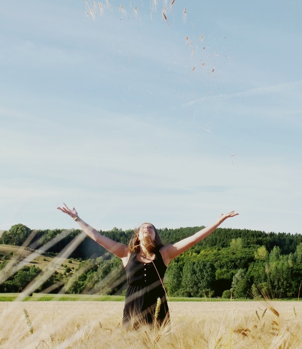 de la joie, du bonheur de par l'attitude de ton modèle (idée pleine de fraîcheur).