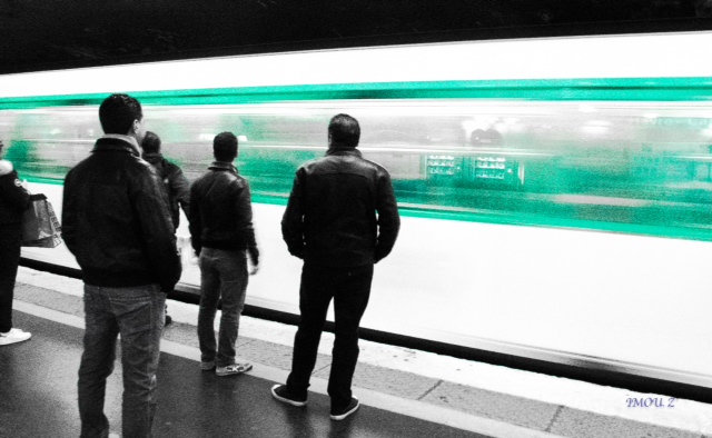 j'adore cette photo,la composition est originale et donne une présence à ce groupe d'hommes le vert et le noir sont superbes, on te reprochera peut être la coupure des pieds en premier plan mais ce n'est qu'un détail