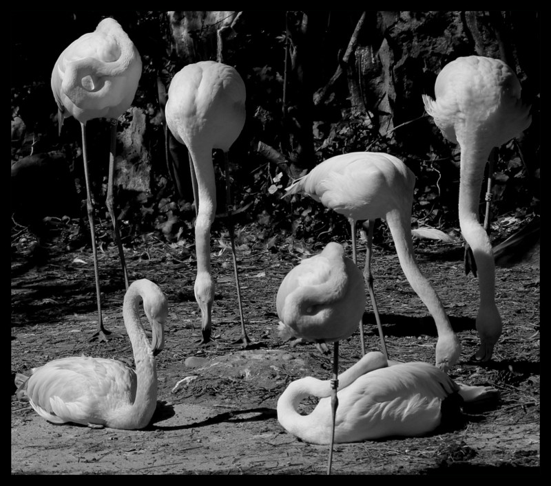 je voulais faire ressortir les différentes courbes et positions des cous...je pensais que le NB les mettrait en valeur...mais il n'y a pas assez de contraste entre le blanc des flamans et le fond
