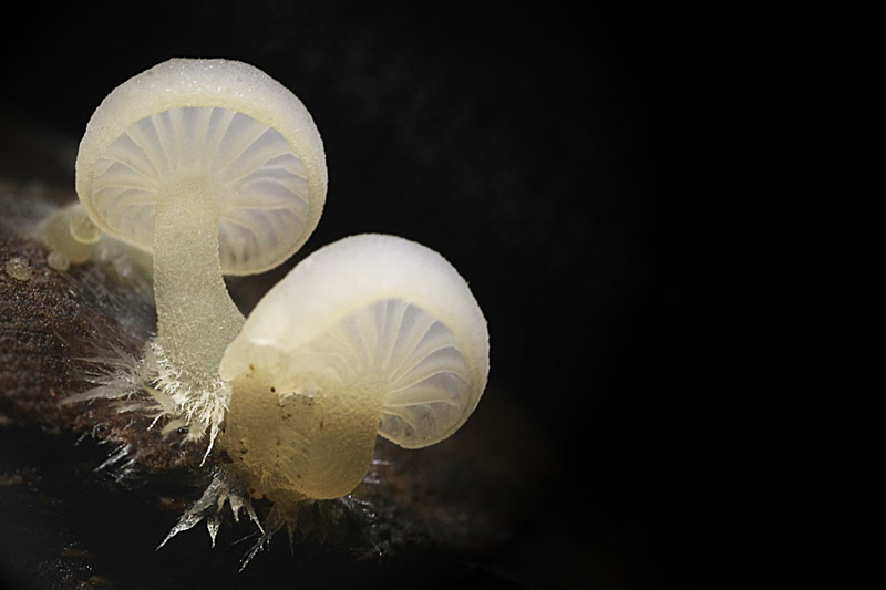 Une photo intéressante bien que j'aime bien que la macro suive la saison. Au départ, on pourrait croire que c'est un format carré mais il n'en est rien. Donc un petit liseré serait bienvenu. Vu l'ambiance, tu as du utiliser un flash, ce qui donne ce fond sombre mais du coup amène un blanc trop fort sur ces champignons qui ont déjà une tendance à trop capter la lum. La prochaine fois, plutôt prendre une lampe de poche ou mieux une lampe à leds pour éclairer ton sujet ou au pire de mettre un calque devant ton flash pour donner un aspect bien plus naturel et profond. Ceci dit, c'est dommage car je l'aime bien ta photo