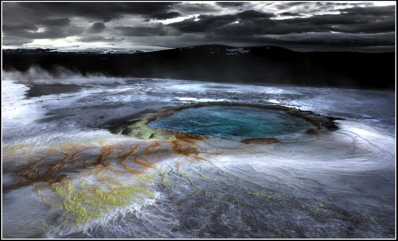 je précise juste qu'à part une correction des niveaux pour la lumière aucune correction en pt….les couleurs sont naturelles…présence d'oxyde de fer et de souffre dans ce petit lac à 100 degré…la couleur bleue de l'eau vient de la diffraction de la lumière sur les particules de silice...