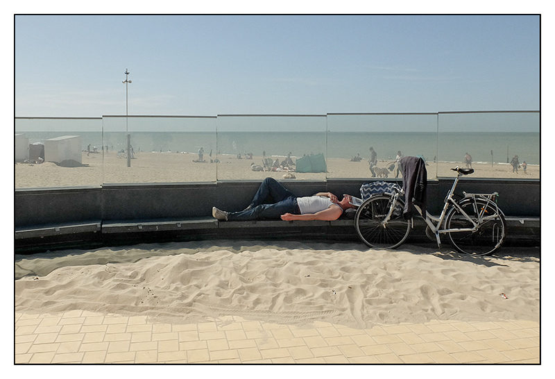 le plus: le filtre offert par les barrières qui nous fait rester sur le bronzeur en floutant la bande de plage habitée ...