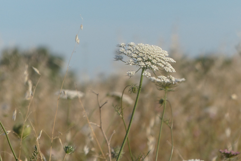 Le cadrage en effet est perfectible de même que la compo. Ton ombrelle ne se détache pas assez de l'ensemble et des éléments au bas de l'image viennent perturber la lecture (tige, feuille,sommités).