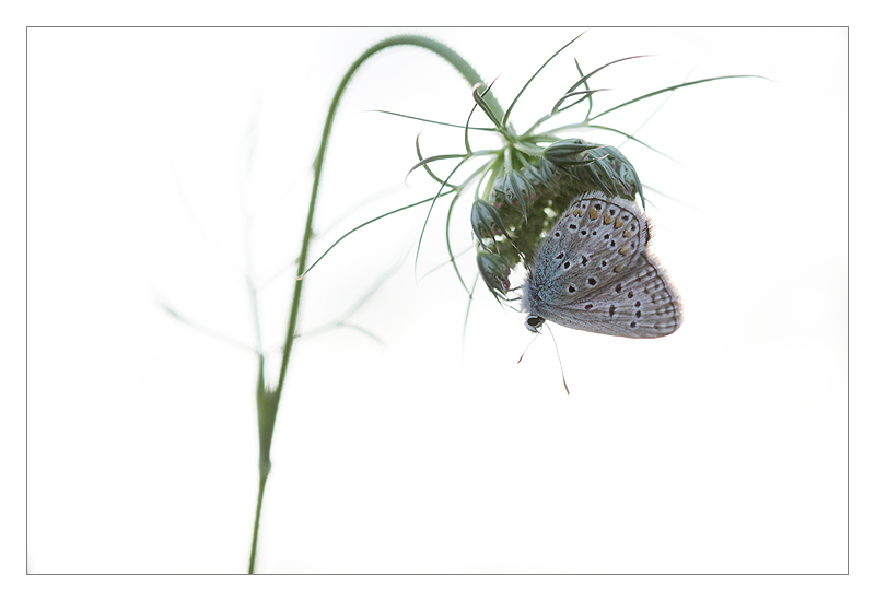 Fred, j'en conviens mais si je monte un peu le cadrage, j'abaisse du coup mon sujet dans la compo. Pas facile comme choix. Après je peux toujours tricher en rajoutant du blanc en haut et à gauche