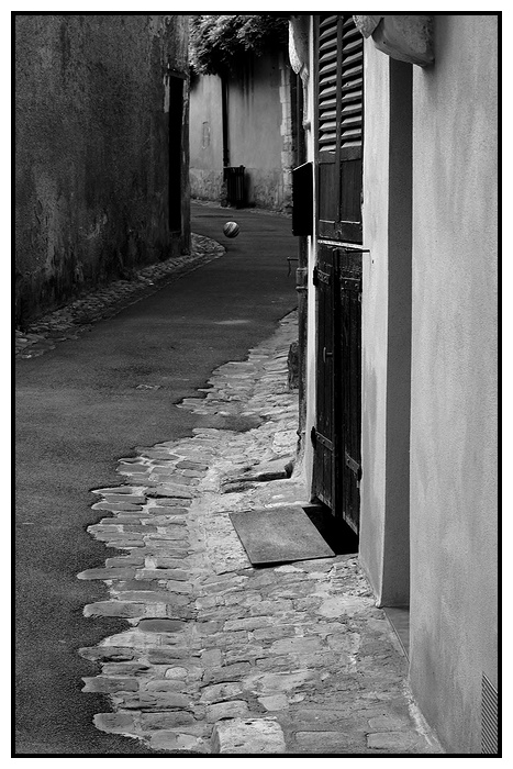Le N/B est superbe et la composition qui mène à ce ballon en suspension très réussie. L'enfant qui va avec (le ballon) ne devrait pas tarder à apparaître... Super!