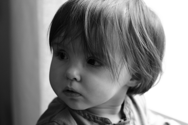 Un cadrage plus resserré; le haut de la tête coupé, j'aurais bien vu également le côté droit, cette luminosité attire trop le regard et de plus place l'enfant en plein centre. Le regard allant au delà de l'image est bien vu il me fait participer à l'action: que regarde le bambin? là une histoire débute.