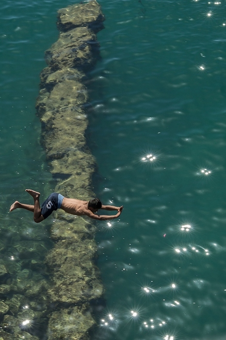 Tel un gamin qui vole...et qui s'apprête à plonger pour aller chercher ces "perles" scintillantes au fond de l'eau...