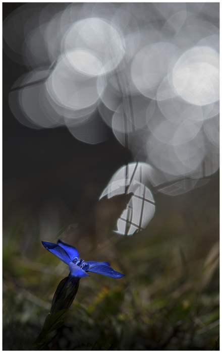C'est étonnant cet arrière plan avec tous ces cercles à f/7.1 ... de la rosée sur une toile d'araignée ???