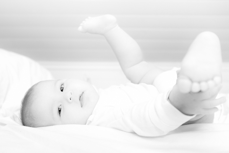 Bonne netteté sur les yeux, j'aime le rendu de la peau et la pose du bébé, j'aime moins le blanc sans relief du gilet.