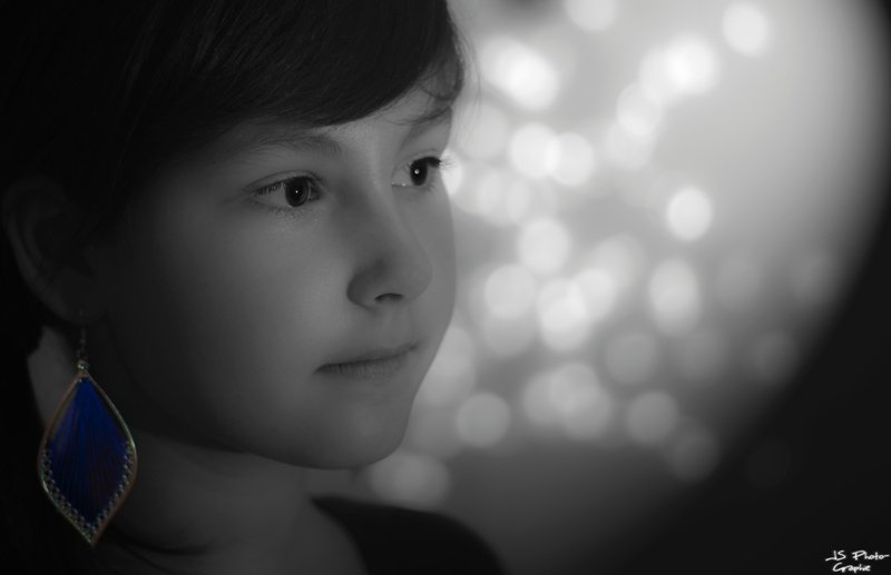 Vraiment dommage cette boucle bleue.....Le portrait est très beau, une lumière douce, un joli bokeh