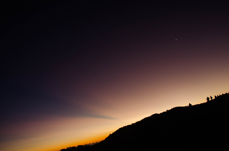 J'aime les couleurs, leurs dégradés, la présence de la lune, et ces personnages qui dévalent la pente constituant une belle zone sombre opposée à celle de l’obscurité en haut, bien parallèles.