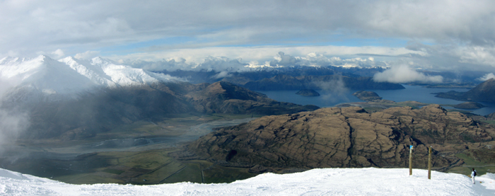 Voici une vue de la station de ski "Trebble Cone" en Nouvelle Zélande (ile sud) (Assemblage de 2 photos).