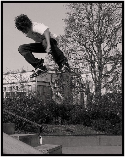 Très bien capté ! Dommage, on distingue mal la planche à cause des branches derrière mais l'ensemble reste très bien réalisé ! La netteté est parfaite et c'est vraiment pas évident à réaliser sur ce genre de photo.