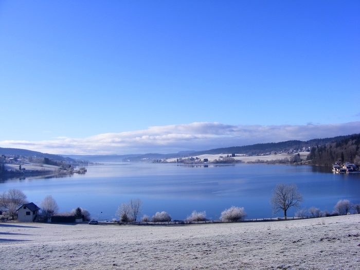 Beau paysage d'hiver que je vois plus en pano car le bleu du ciel n'apporte pas grand chose j'aime beaucoup les arbres qui détachent sur le bleu du lac.