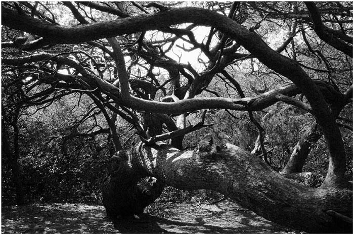 Version couleur pour moi, ou alors un traitement plus sombre et granuleux sur le N/B pour renforcer le côté menaçant d'une vieille fôret de légende.