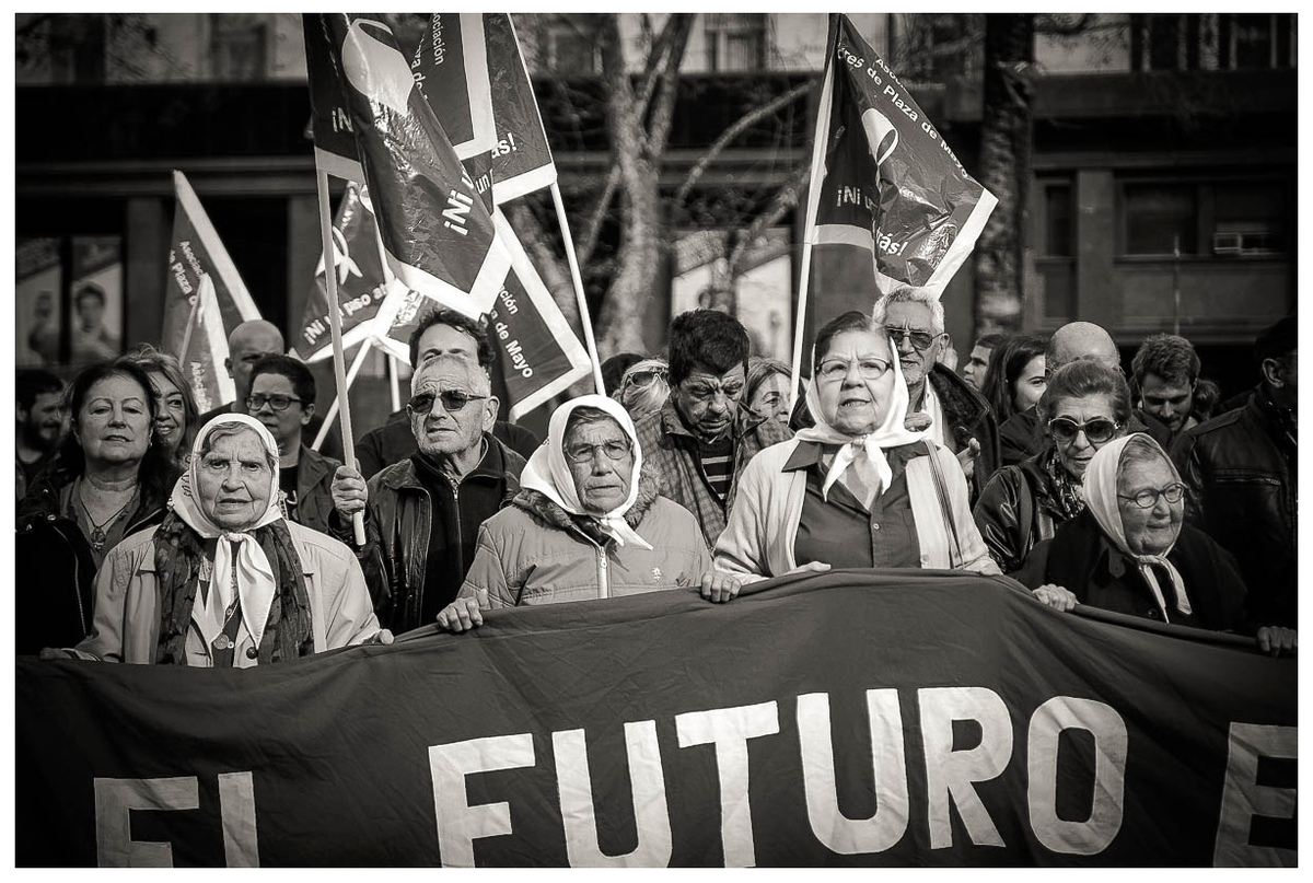 Depuis maintenant près de 40 ans ces femmes tournent tous les jeudi après-midi autour de la place de Mai à Buenos Aires face au palais présidentiel dans le but de retrouver leurs petits- enfants volés par la dictature militaire en 1977.