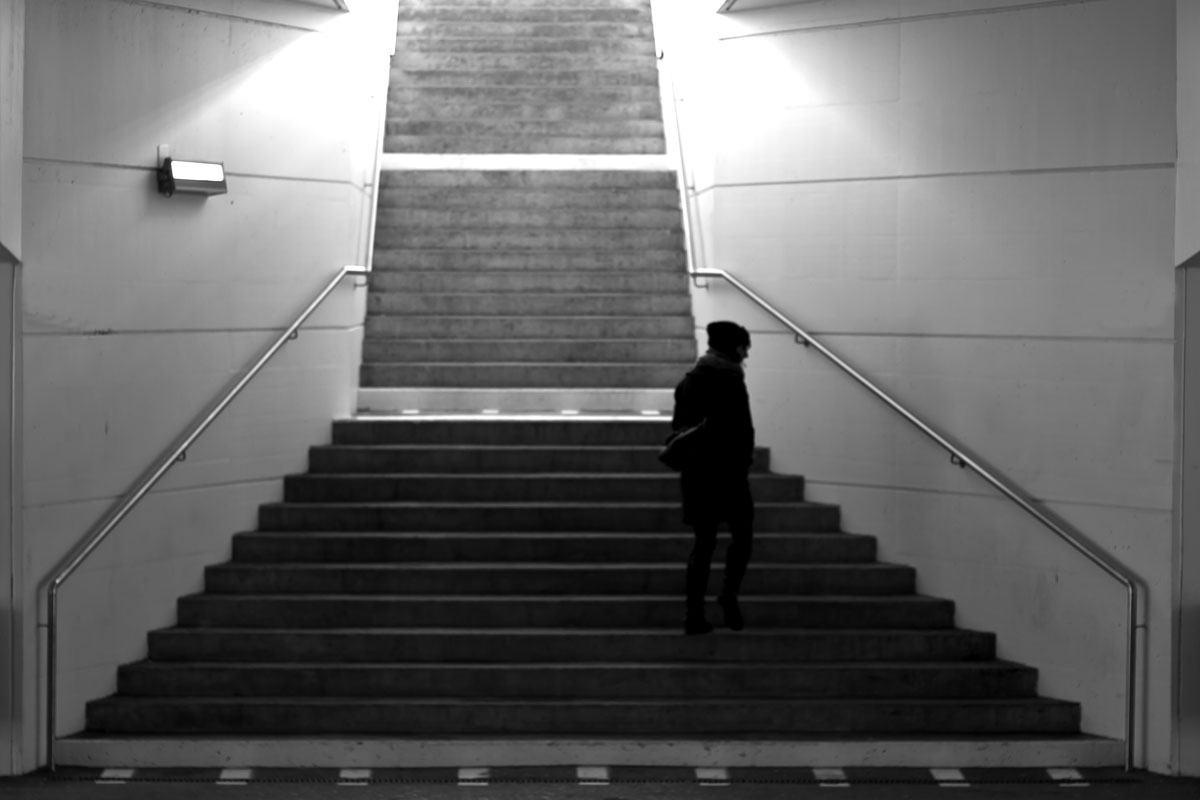 Partir, oui mais pas sûr elle se retourne comme avec un regret surtout que l'escalier qui mène vers le après n'est pas net, un après pas bien planifié, pas bien attirant malgré la lumière..... C'est mon histoire à moi mais j'affabule peut être.