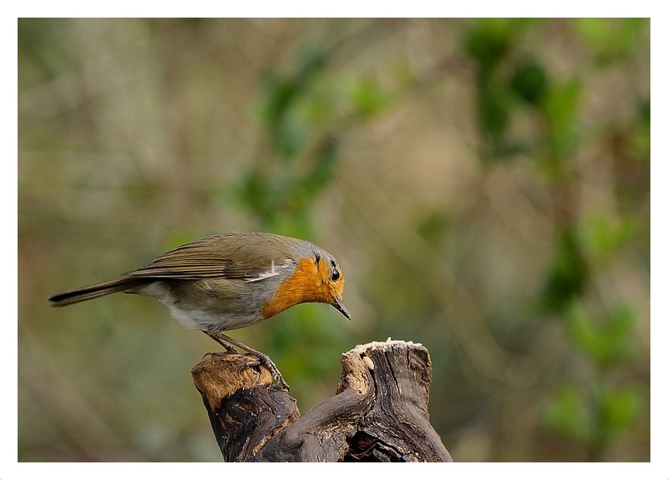 Le rouge-gorge s'en met plein le gosier. cette fois la photo est nette et respire au contraire de la mésange précédente. Sympa.