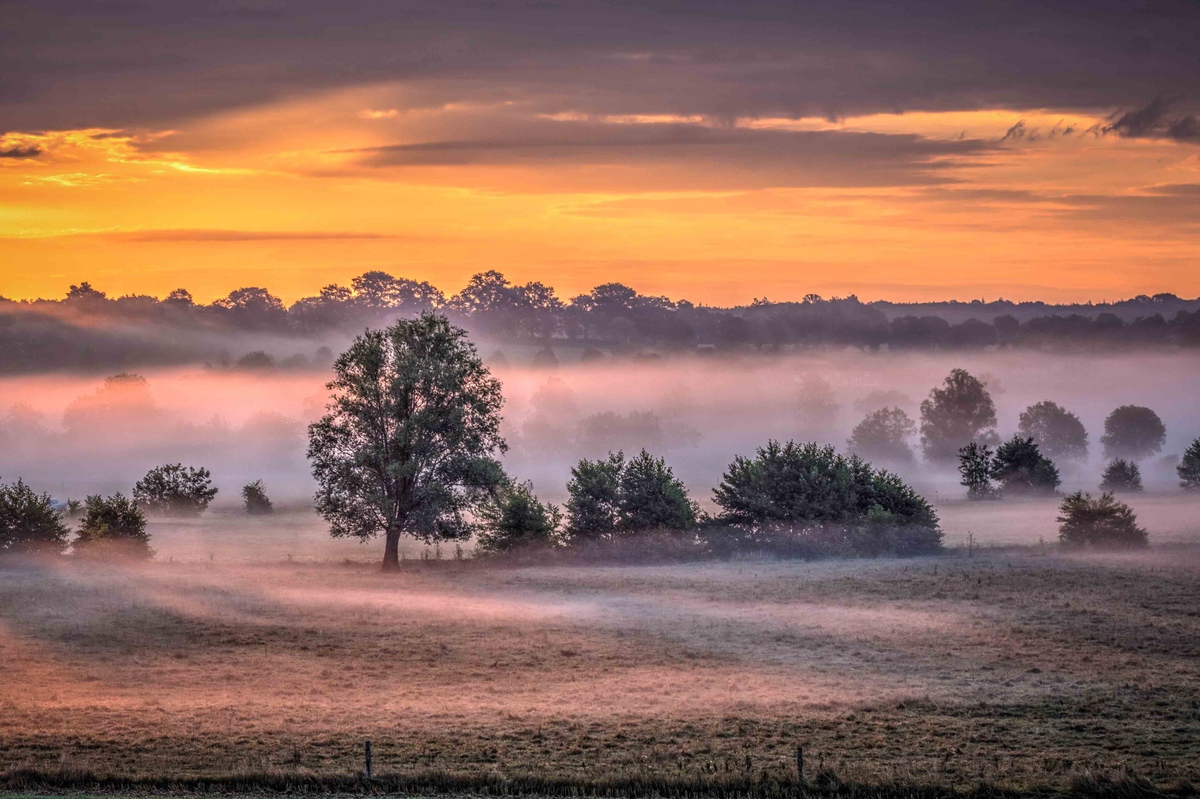 Merci pour votre photo. J'aime beaucoup cette brume matinale et la façon dont elle nous apparaît. L'arbre au premier plan donne du relief à la composition. C'est un cliché qui me plait.